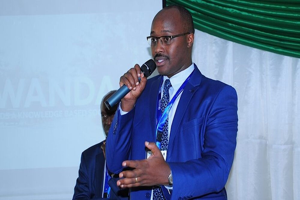 The guest of honour, the Deputy Vice Chancellor in charge of Administration and Finance in Rwanda Polytechnic, Dr. Alex Luberwa acknowledging the role of stakeholders